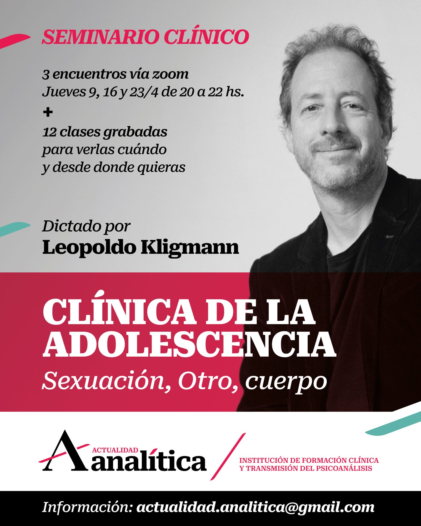 INICIO DE LA ESPECIALIZACIÓN EN PSICOANÁLISIS10 DE MARZO, 20HS.COMIENZO DEL CURSO ANUAL DE LA ESPECIALIZACIÓNPrimera parte del añoInicios, recorridos y finales de análisis.Primera clase¿Qué es la clínica psicoanalítica? A cargo de Leopoldo KligmannExclusivo para...